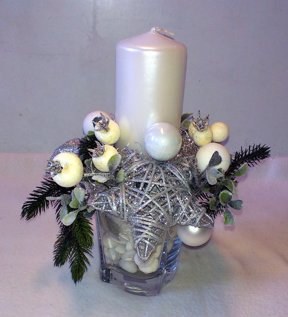 Biely vianočný aranžmán s kamienkami QIETOK » Kytice » aranzmany-vianocne-trvanlive-vyradene » Biely vianočný aranžmán s kamienkami Trvanlivý malý vianočný aranžmán umiestnený do sklenenej vázičky s vetvičkami z umelej čečiny a rôznymi ozdobami v bielej a striebornej farbe. Cena: 17,00 € Aktualizujem fúrik... Akutalizujem...