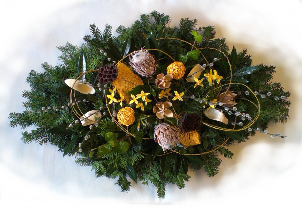 Jarné lúče QIETOK » Kytice » Aranžmány » Jarné lúče Lúče jarného slnka akoby pozlátili aranžmán z látkovej zlatovky, Protea, Salix, farbenej palmovej kôry, prírodných „Wildlilien“a pedigball na sviežej zeleni. Cena: 29,00 € Aktualizujem fúrik... Akutalizujem...