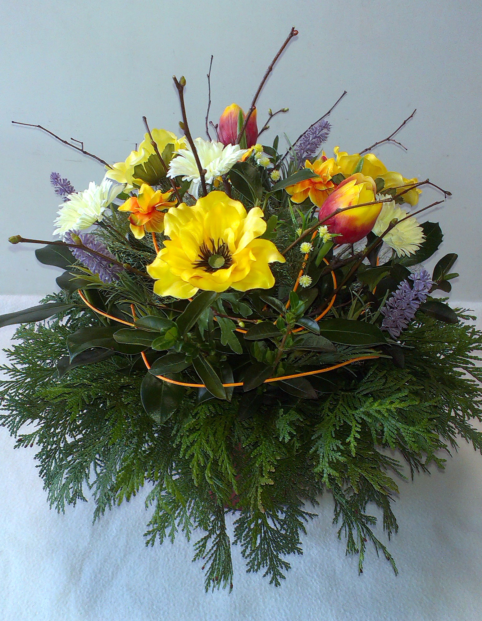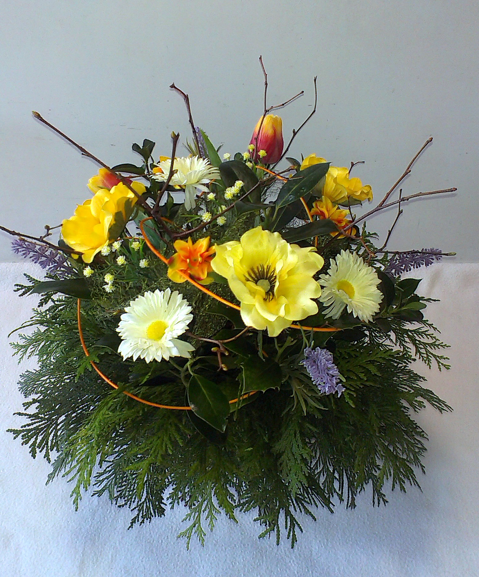 Jarné vyznanie QIETOK » Kytice » Aranžmány » Jarné vyznanie Vypichovaný jarný aranžmán z vetvičiek Thuja, Ilex a Ligustrum, z rôznych konárikov a jarných látkových kvetov. Cena: 24,00 € Aktualizujem fúrik... Akutalizujem...