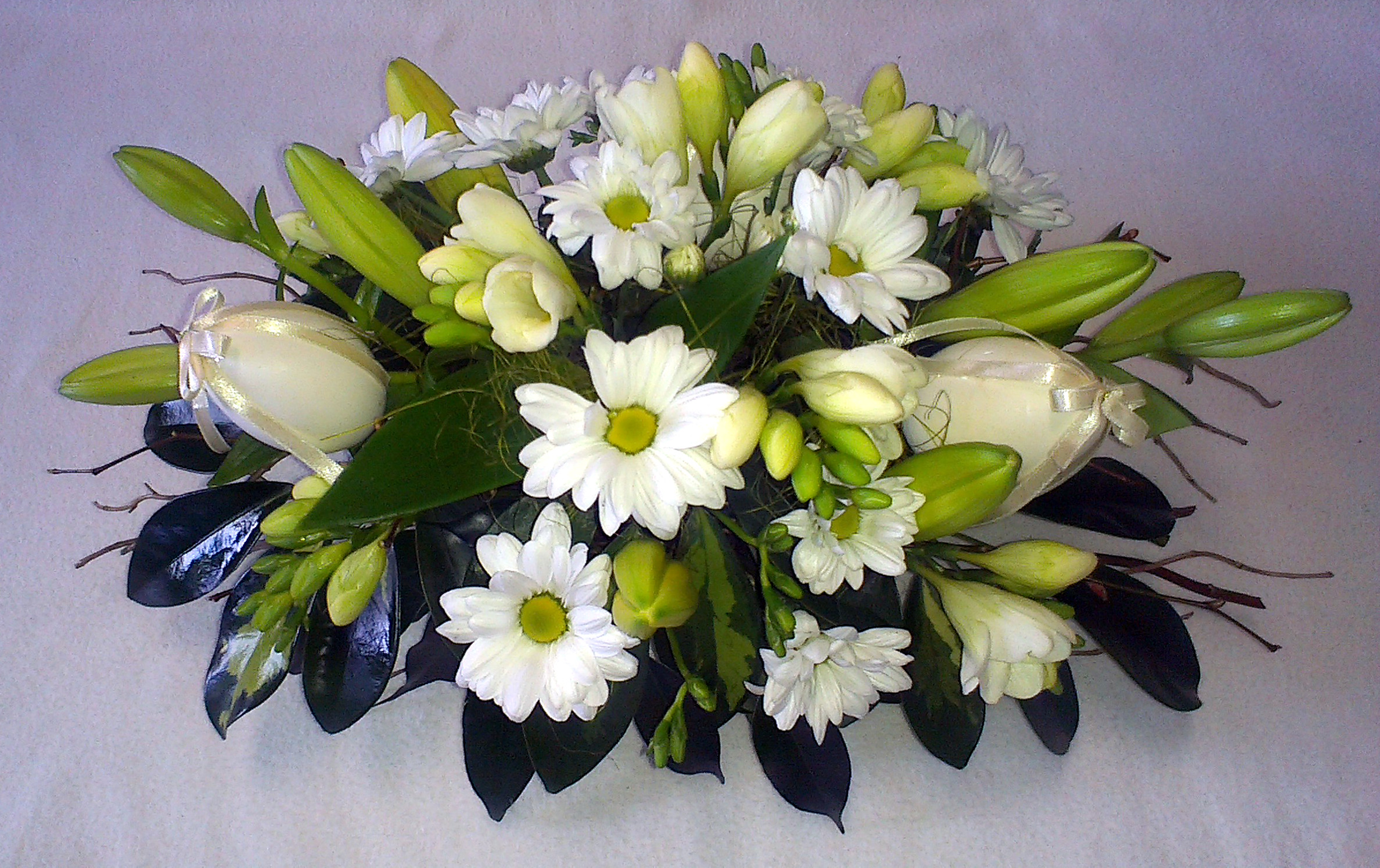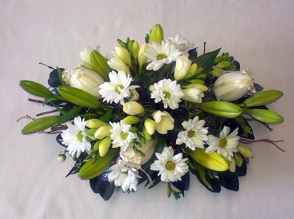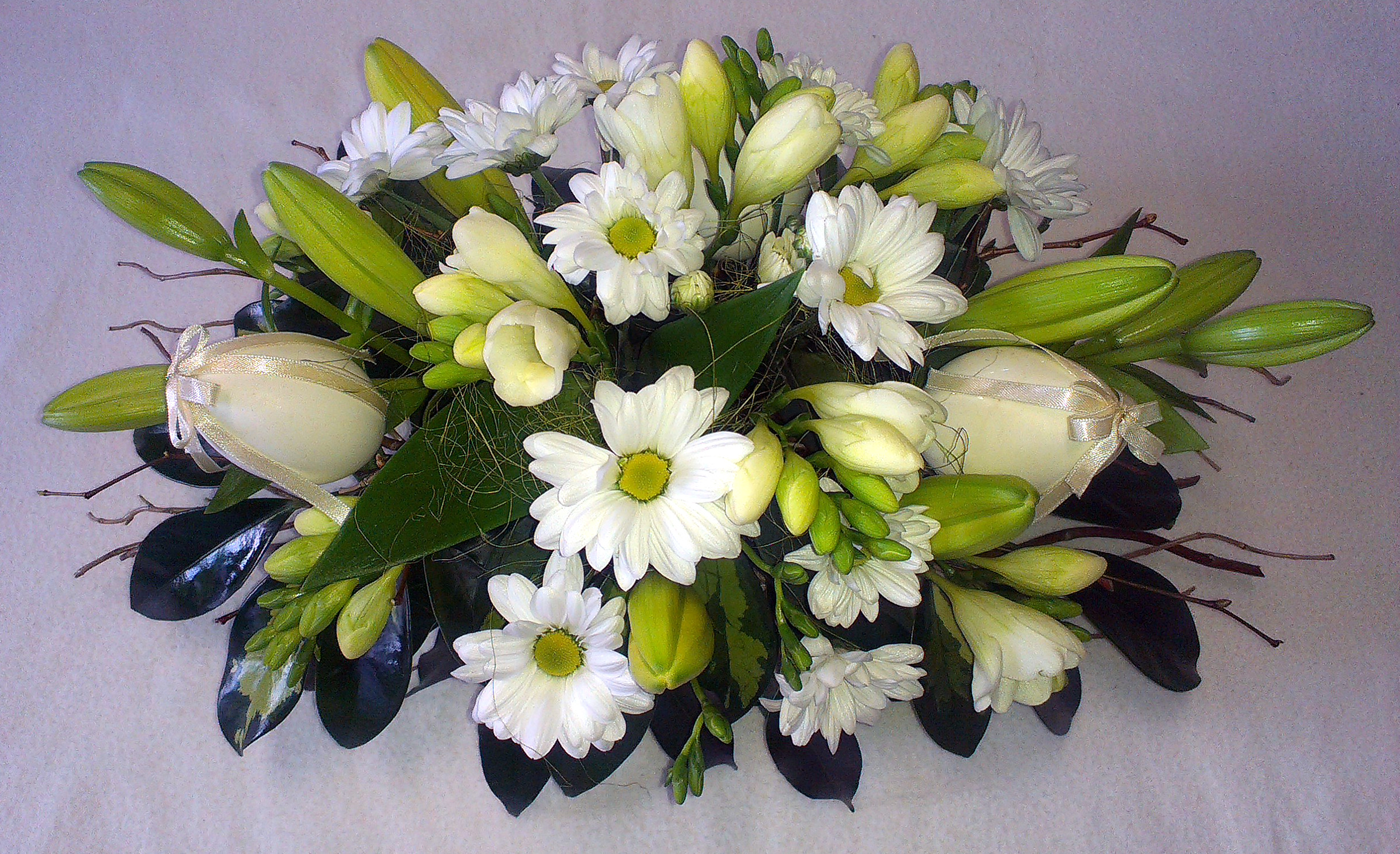 Veľkonočná nedeľa QIETOK » Kytice » Aranžmány » Veľkonočná nedeľa Jarný vypichovaný aranžmán z bielych Freesia, žltých ľalií, „margerétkových“ chryzantém, halúzok Tilia a Salix a listov Schefflera. Cena: 30,00 € Aktualizujem fúrik... Akutalizujem...