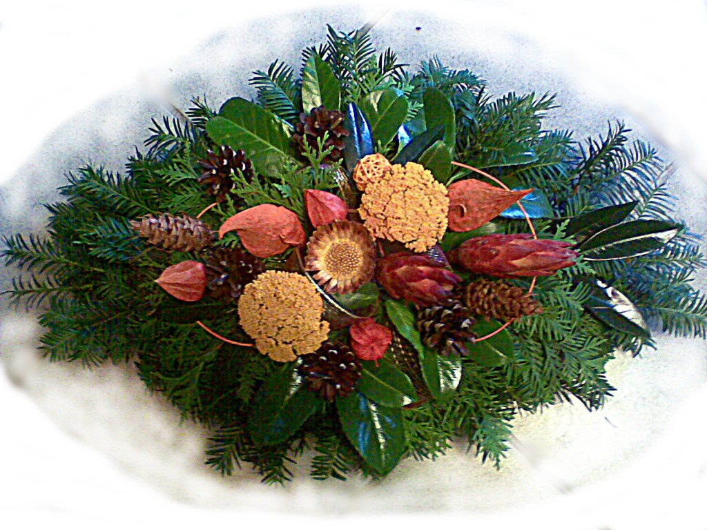 Jesenný žltooranžový aranžmán QIETOK » Kytice » Aranžmány » Jesenný žltooranžový aranžmán Pestrý žltooranžový vypichovaný plný veniec v tvare oválu so sušenou Achillea, Protea, šiškami a ďaľšími prírodnými doplnkami na zelenom základe z Taxus. Cena: 26,00 € Aktualizujem fúrik... Akutalizujem...