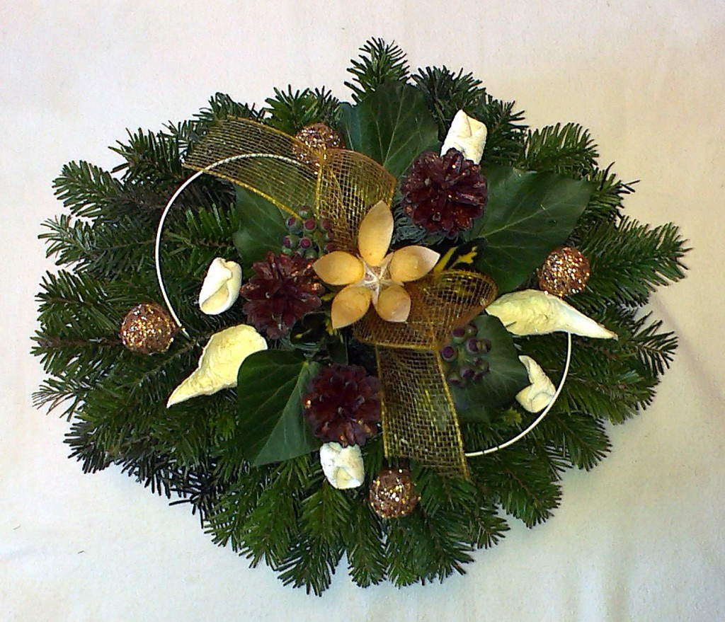 Hnedobéžový aranžmán QIETOK » Kytice » aranzmany-prilezitostne-vyradene » Hnedobéžový aranžmán Takmer okrúhly vypichovaný aranžmán z čerstvých jedľových vetvičiek s jemnou sieťovanou stuhou, lesklými „pedigball“ a prírodnými ozdobami. Cena: 16,00 € Aktualizujem fúrik... Akutalizujem...