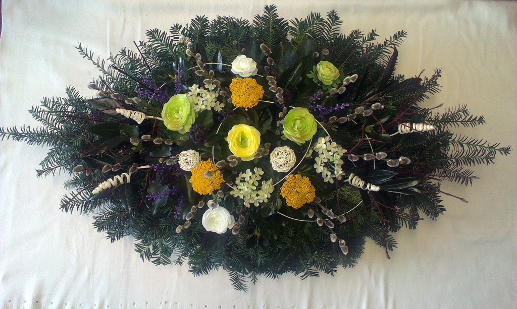 Žltozelený jarný aranžmán QIETOK » Kytice » Aranžmány » Žltozelený jarný aranžmán Z vetvičiek Taxus a Thuja je vypichovaný podlhovastý aranžmán, v ktorom sú použité rôzne druhy jarných látkových kvetov, špirálky, „pedigball“ a Salix. Cena: 30,00 € Aktualizujem fúrik... Akutalizujem...