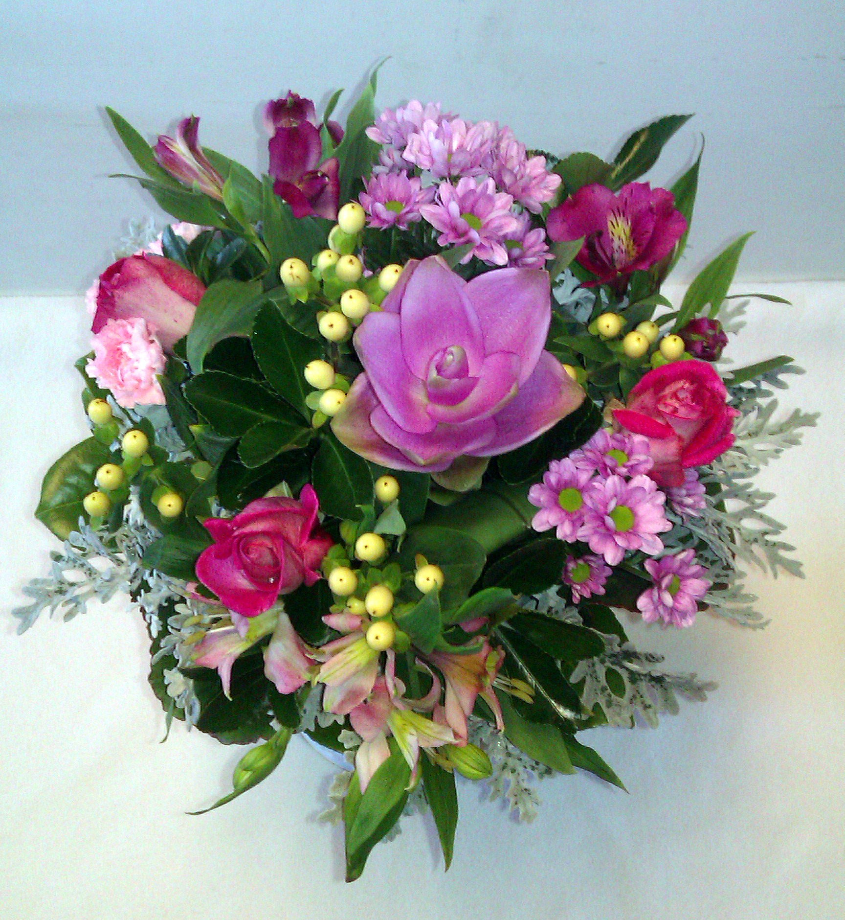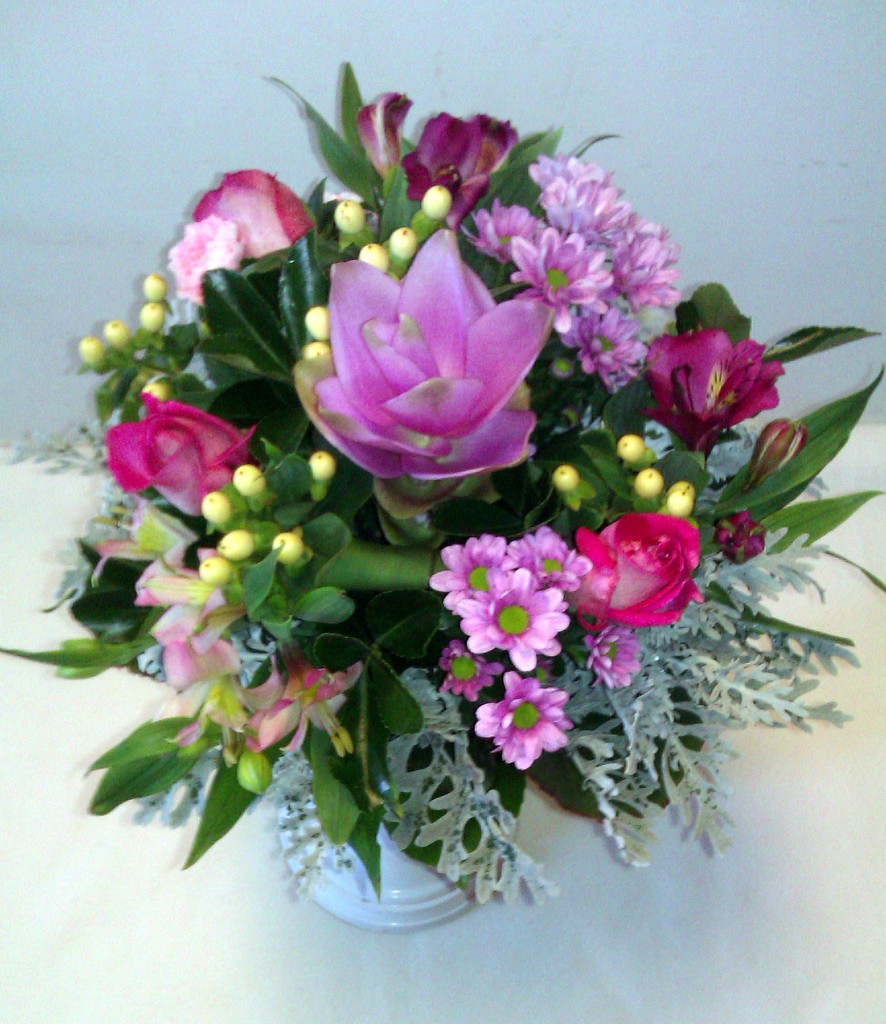 Nová krása QIETOK » Kytice » Kytice » Gratulačné » chryzantémami » Nová krása Krásna fialovoružová Curcuma je základným kvetom v tejto v ruke viazanej kytici z trsových Rosa a Dianthus, Alstroemeria, krémového Hypericum na listoch Prunus a Bergenia. Cena: 38,00 € Aktualizujem fúrik... Akutalizujem...