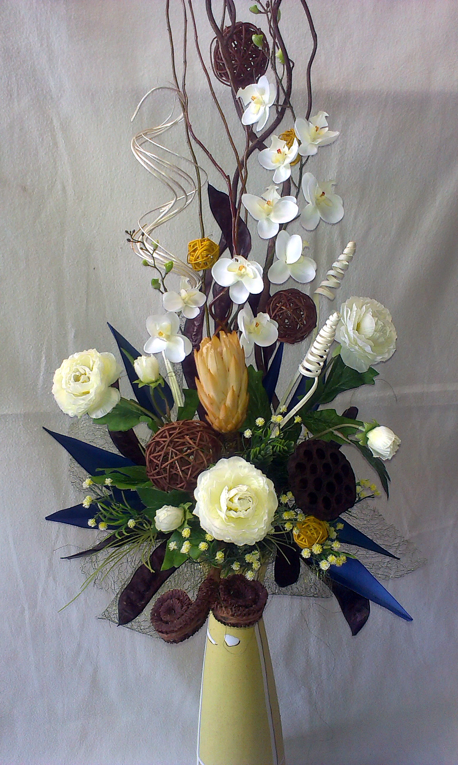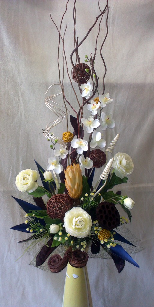 Jarná ratolesť QIETOK » Kytice » Sušené kvety » Jarná ratolesť Vysoká trvanliváí kytica vyhotovená kombináciou viacerých techník z halúzok Salix, látkového Phalaenopsis, farbenej Protea, bielenej Protea, „pedigball“, plodov Gleditsia, Typha, rôznzch sušených listov a zelenej „pavučiny“. Cena: 37,00 € Aktualizujem fúrik... Akutalizujem...