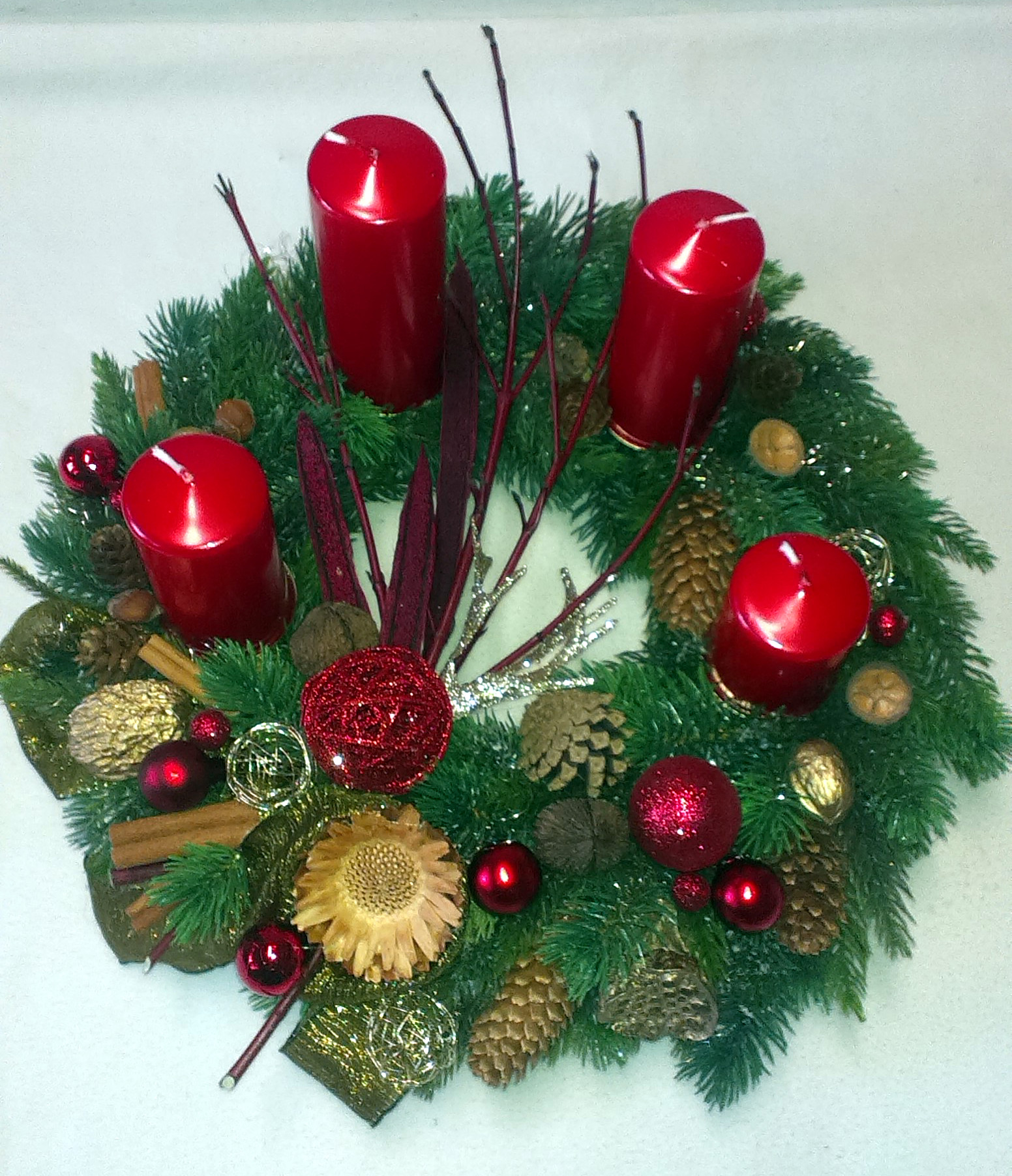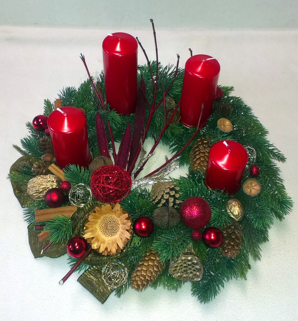 Nový červený QIETOK » Kytice » Vence » Adventné trvanlivé » Nový červený Ako živý sa tvári tento adventný veniec y umelej čečiny s postupnými červenými sviečkami doplnený prírodnou Protea, bordovými halúzkami Cornus a bohatou prízdobou. Cena: 47,00 € Aktualizujem fúrik... Akutalizujem...
