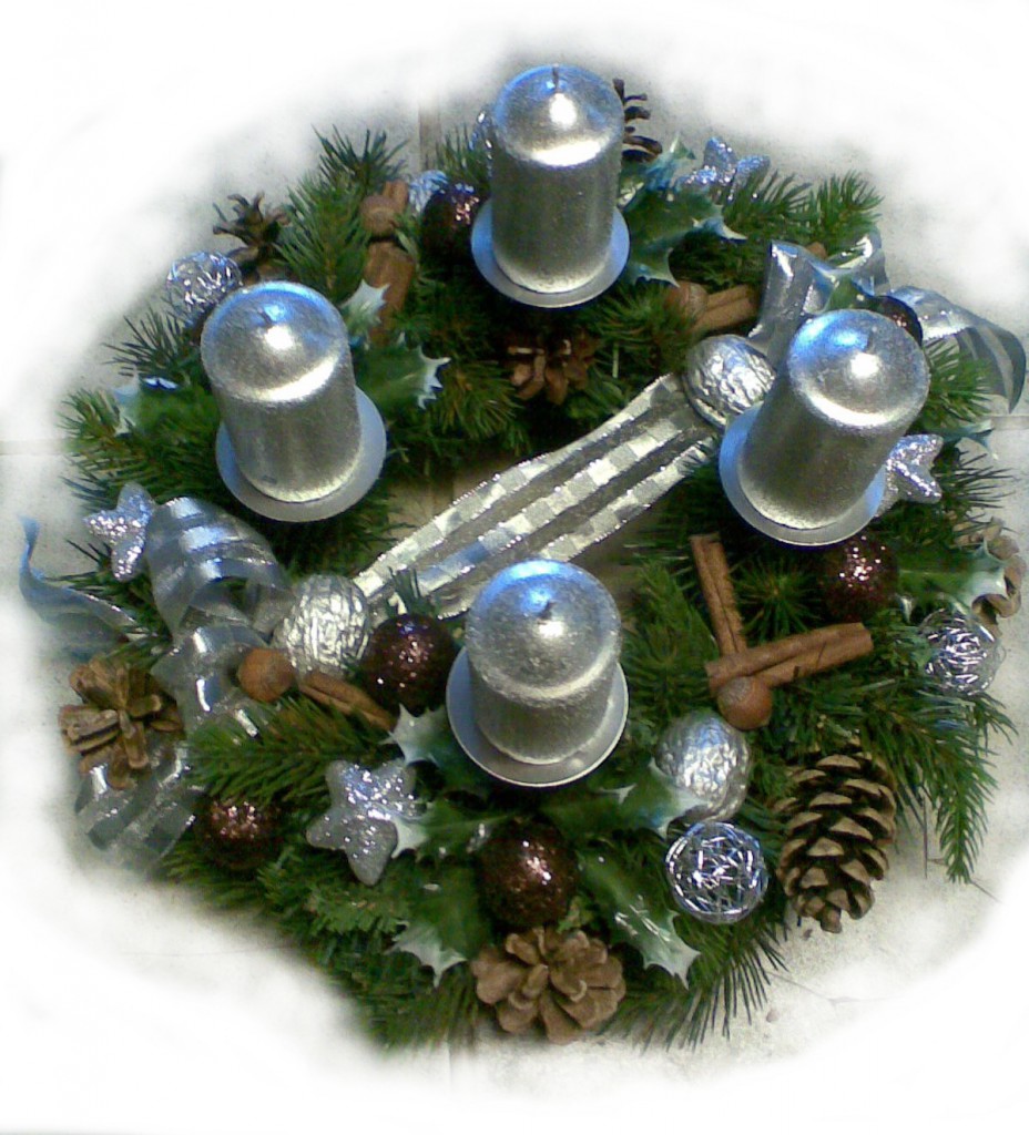 Trvanlivý strieborný adventný veniec QIETOK » Kytice » Vence » Adventné trvanlivé » Trvanlivý strieborný adventný veniec Trvanlivý adventný veniec s vymeniteľnými striebornými sviečkami s umelým ihličím, škoricou, šiškami, rôznymi guľkmi a bielymi hviezdičkami. Cena: 33,00 € Aktualizujem fúrik... Akutalizujem...