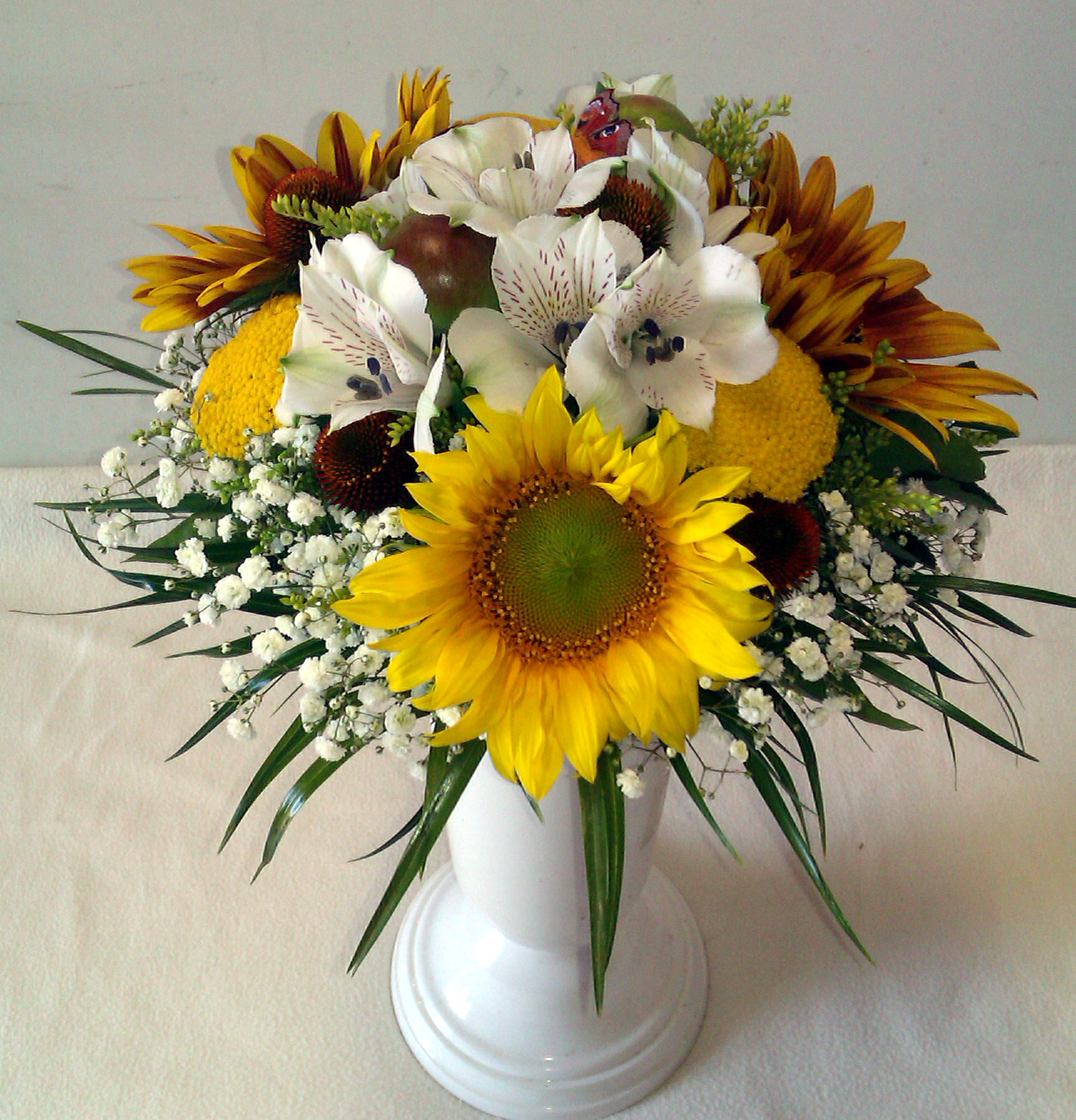 Bambuľka QIETOK » Kytice » Kytice » Gratulačné » Bambuľka Milá letná kytička z rôznofarebných slnečníc, zelených jabĺčok, súkvetí Achillea, Solidago, bielych alstromérií a Gypsophila dozdobená motýlikom. Cena: 37,00 € Aktualizujem fúrik... Akutalizujem...