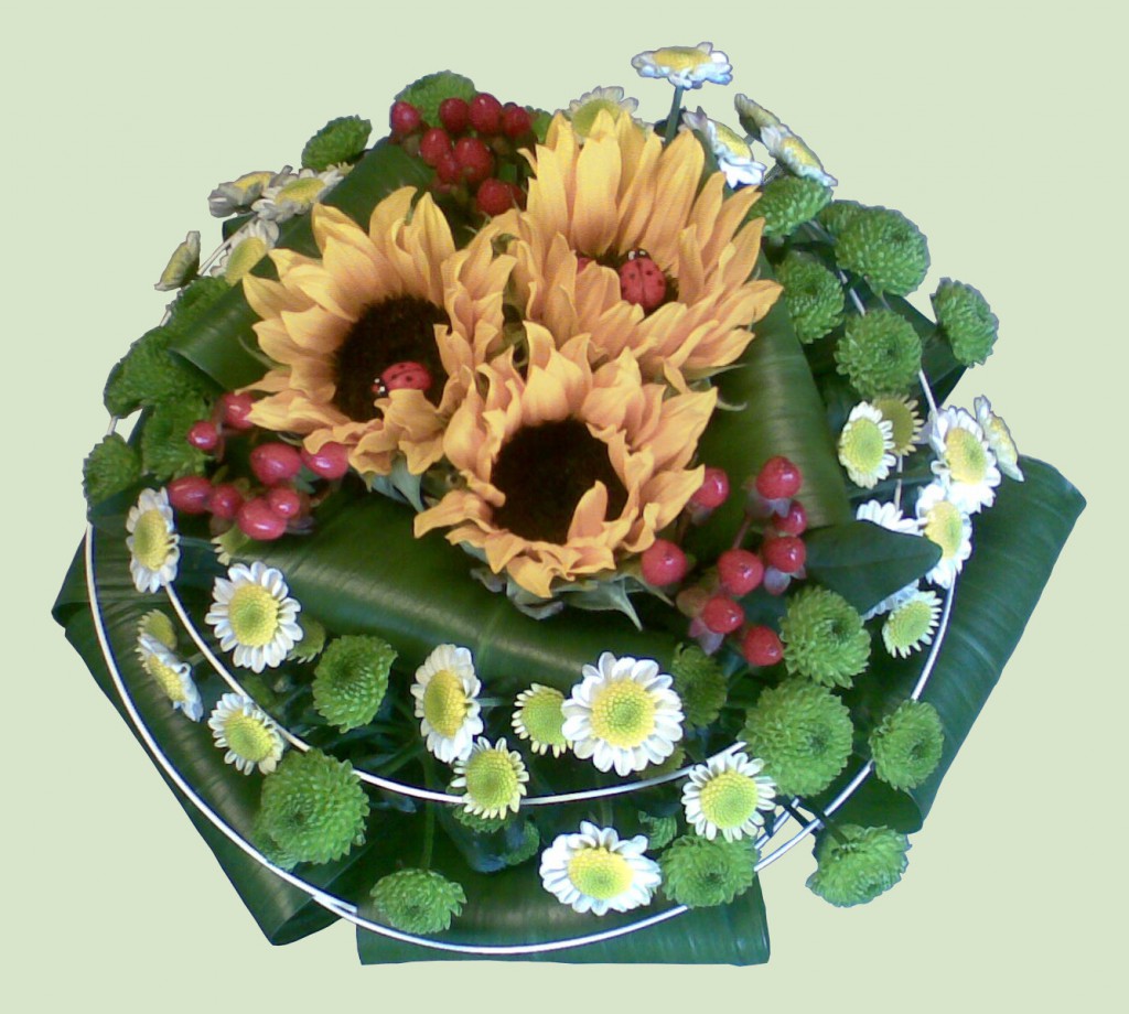 Roztomilá QIETOK » Kytice » Kytice » Gratulačné » chryzantémami » Roztomilá Tri slnečnice, na ktorých práve pristáli lienky, tvoria základ pestrej milej kytičky. Okolo slnečníc sa usadili červené guľôčky Hypericum a trsové drobnokveté chryzantémy „Santini“. Cena: 41,00 € Aktualizujem fúrik... Akutalizujem...